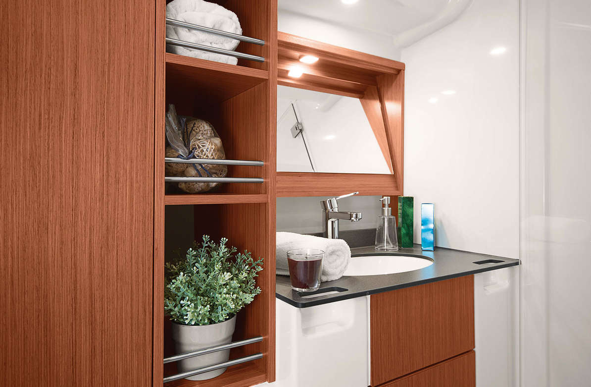 Na pokładzie znajdziesz 4 lub 5 kabin (w zależności od konfiguracji), 2 lub 3 łazienki z prysznicami, dużą mesę z wygodną kanapą, rozkładanym stołem i w pełni wyposażonym aneksem kuchennym. Jest tu wszystko, czego potrzebujesz na tygodniowy rejs: przestrzeń do wspólnego spędzania czasu, kącik do czytania, miejsce na kawę o poranku i kolację pod gwiazdami.