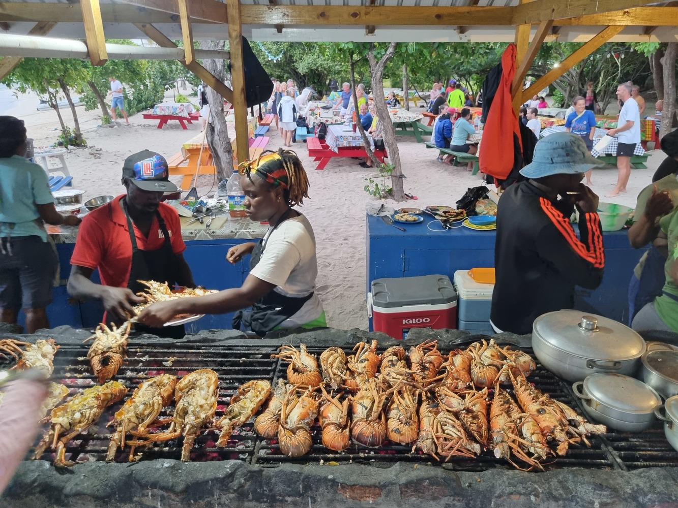 Kiedy cumujemy w porcie lub schodzimy na ląd, mamy okazję spróbować lokalnych specjałów w małych karaibskich restauracjach czy barach przy plaży. Jeśli większość załogi ma ochotę, chętnie organizujemy wspólną kolację „na mieście”, aby poczuć prawdziwą karaibską atmosferę.