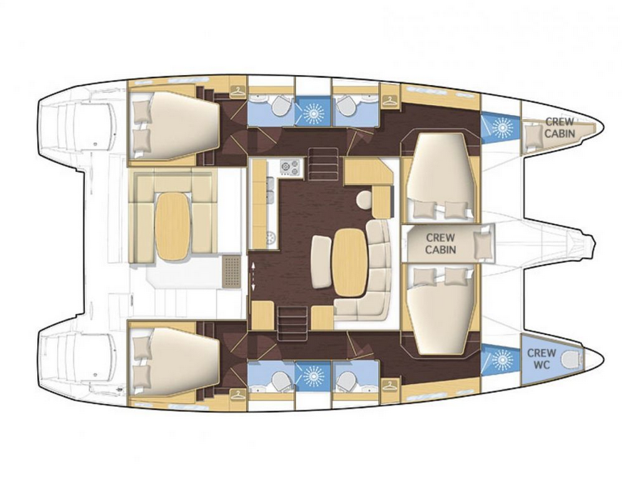 - Lagoon 40 dostępna jest w wersjach z 3 lub 4 kabinami, co daje możliwość noclegu dla 6-10 osób (w zależności układu).