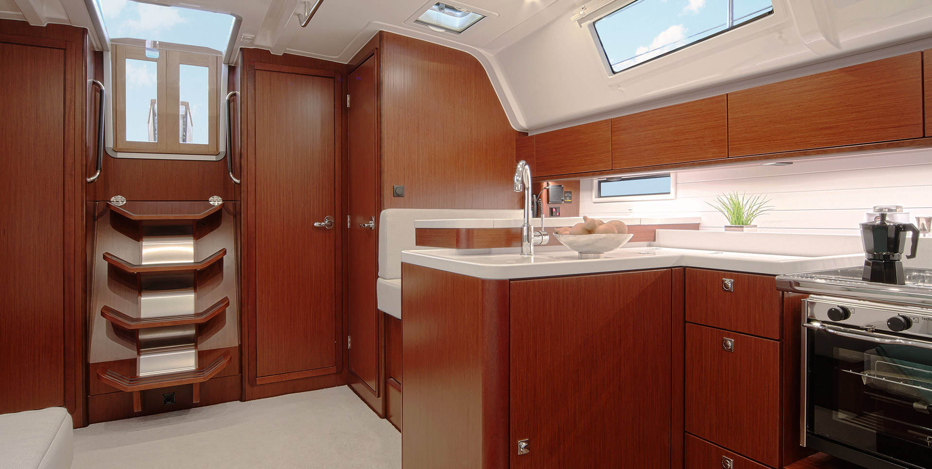 Na pokładzie znajdziesz 4 lub 5 kabin (w zależności od konfiguracji), 2 lub 3 łazienki z prysznicami, dużą mesę z wygodną kanapą, rozkładanym stołem i w pełni wyposażonym aneksem kuchennym. Jest tu wszystko, czego potrzebujesz na tygodniowy rejs: przestrzeń do wspólnego spędzania czasu, kącik do czytania, miejsce na kawę o poranku i kolację pod gwiazdami.